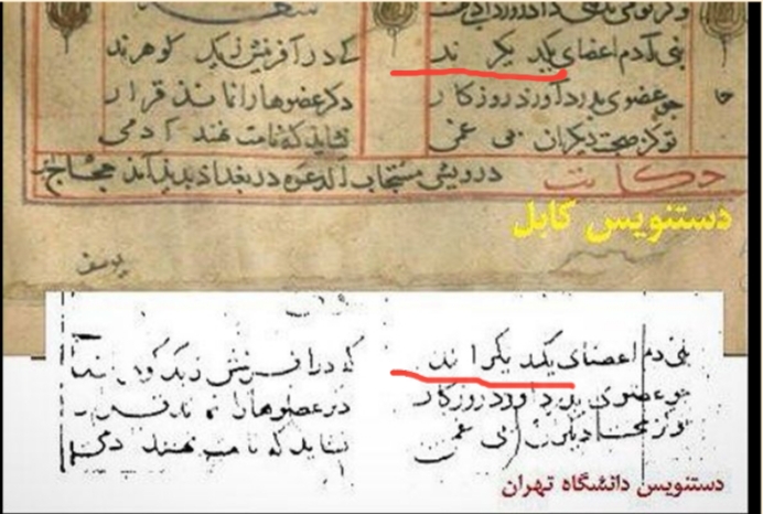 دوم اینکه؛ از نظر معنا هم که نگاه کنیم، شاعر بزرگی چون سعدی نمیگوید: "بنیآدم اعضای یکدیگرند"